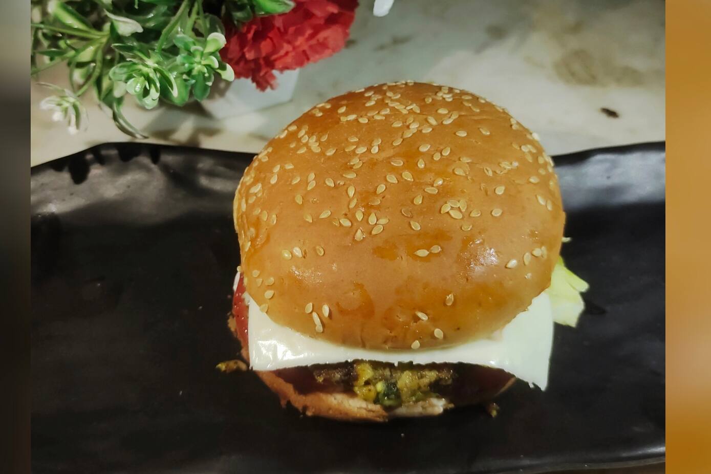 Paneer or cottage cheese grilled tucked in with lettuce cheese and mayonnaise and onion and tomato.