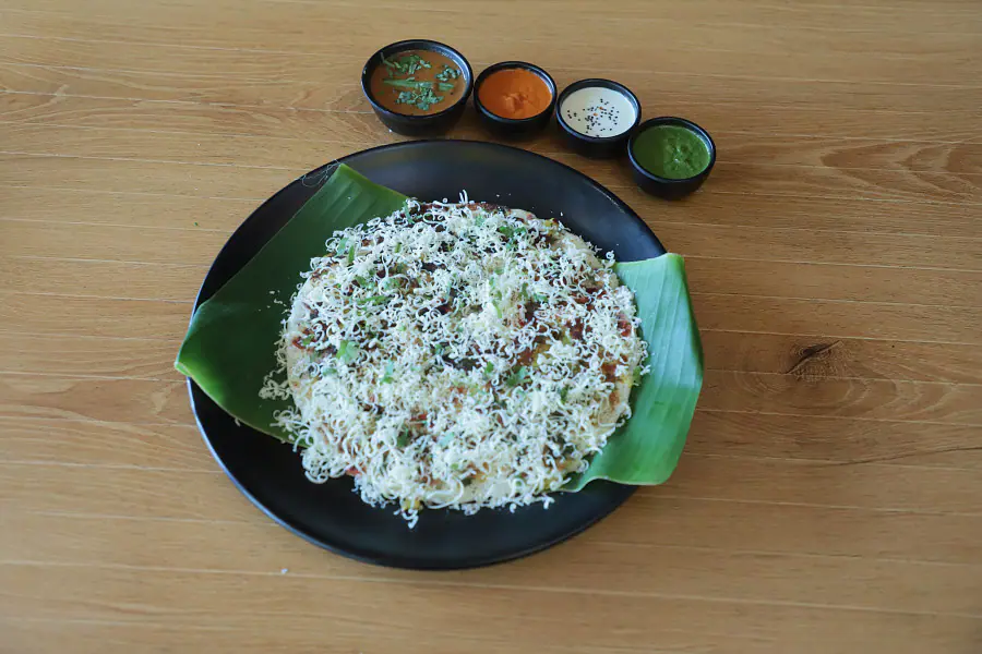 (Serves 1) Savor the traditional flavors with a modern twist in our Sada Uttapam, a delightful fusion of South Indian cuisine, Served with Sambhar (300ml), Coconut Chutney (100ml), Tomato Chutney (50ml).