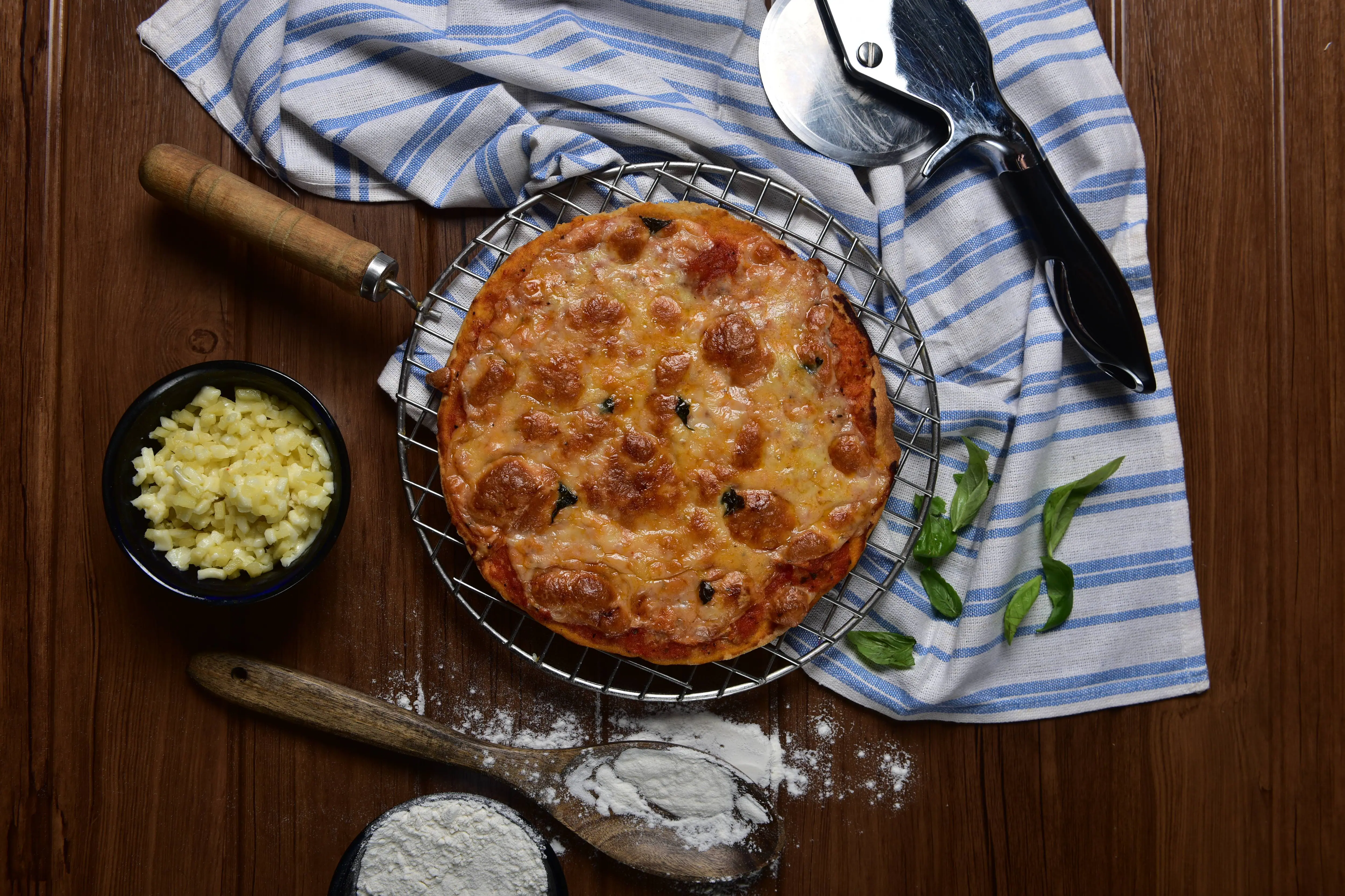 Garlic Bread With Cheese ₹180 Garlic Bread ₹160 Fantastic Four Pizza [9 Inches] Onion, bell pepper, jalapeno, olives ₹430 Tabasco Pizza [9 Inches] Sundried tomato, jalapeno, red paprika ₹450 Full House Pizza [9 Inches] Onion, bell pepper, jalapeno, olives, mushroom ₹450 Chilli Garlic Pizza [9 Inches] Green chillies, crushed garlic ₹430 Say Cheese Pizza [9 Inches] In house pizza sauce, cheese. ₹350 Classic Veggie Pizza [9 Inches] Onion, bell pepper ₹370 Tandoori Paneer Pizza [9 Inches] Spiced paneer, onion, bell red paprika ₹470 Terrific Trio Pizza [9 Inches] Onion, bell pepper, jalapeno. ₹400