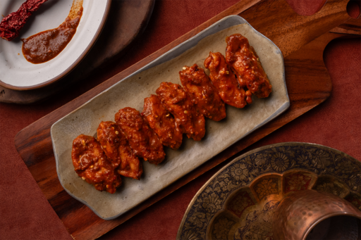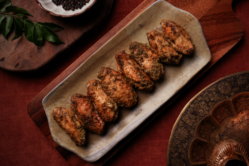 Juicy chicken wings marinated in bold pepper masala, grilled to perfection, and finished with a touch of butter. Served with creamy garlic mayonnaise and our signature King Sauce for a flavorful kick.