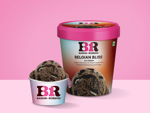 Rich Chocolate ice cream with hidden treasures of dark chocolate cookies, hugged by a caramel ribbon. This delectable Chocolate delight is like no other! Sit back and enjoy this rich Belgian Bliss ice cream. --Small Scoop (118ml)-326.2 kcal / Regular Scoop (180ml) 497.5 kcal / Double Scoop(236ml) 652.3 kcal.Factory sealed 450ml-1243.8 kcal / Hand scooped 500ml-1382 kcal / Homepacks 700ml-1934.8 kcal / Hand scooped 1 ltr-2764 kcal Allergen - Contains Milk and wheat. May Contains Nut and Soy.