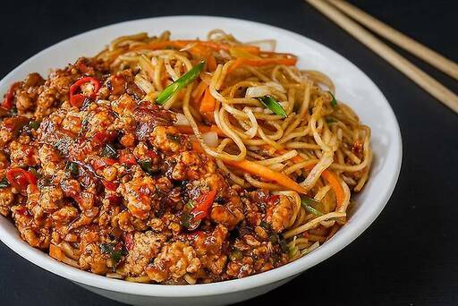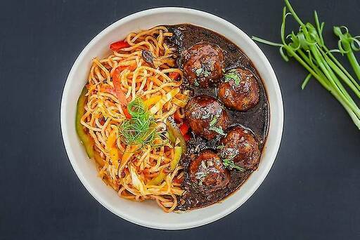 Shiitake mushrooms and a handful of assorted crunchy veggies are seasoned in a hot wok and tossed with a fiery chilli paste and noodles. Pleasant little veggie dumplings made with potatoes, cabbage, carrot and coriander simmered in red and green-chilli infused soy sauce rounds off this lip-smacking meal. This has been one of our most popular meals on the menu. All our bowls are prepared fresh on your order.