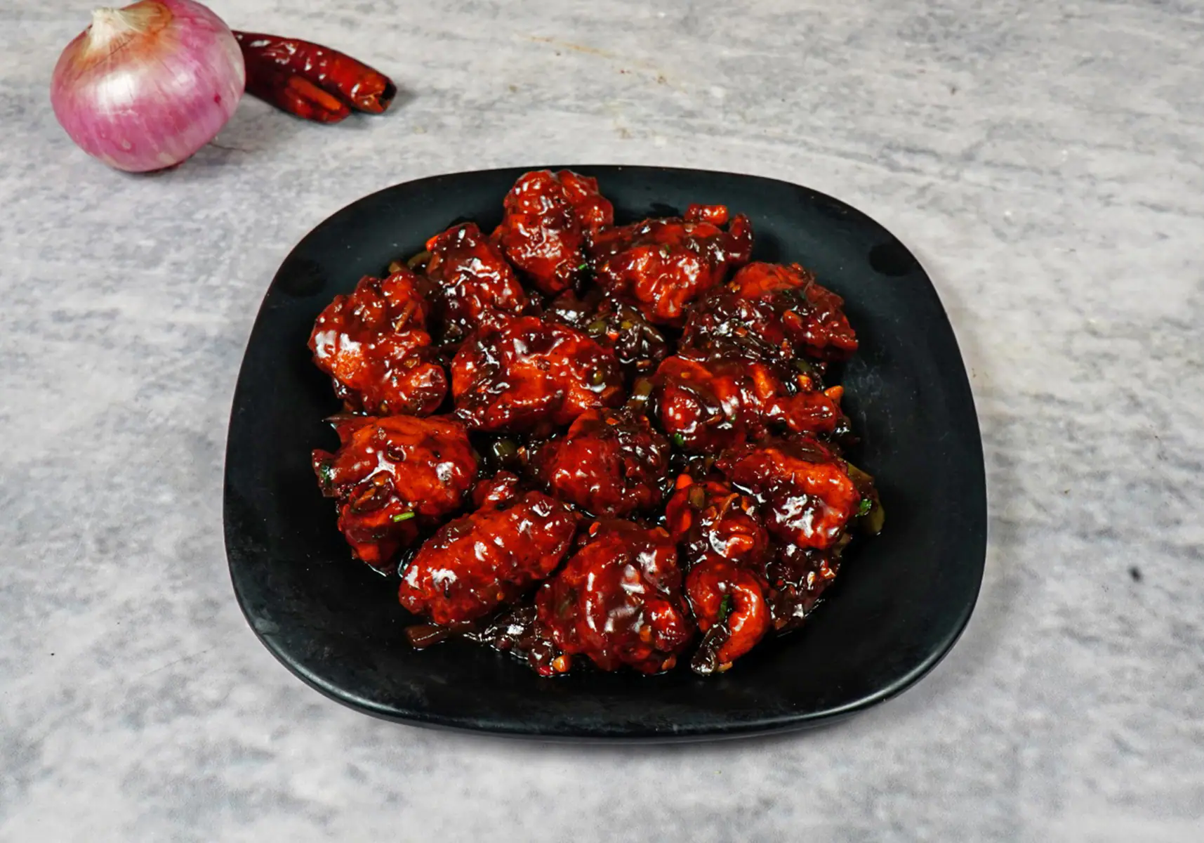 Grilled chicken coated with a smoky and savory barbecue sauce, offering a classic flavour profile.
