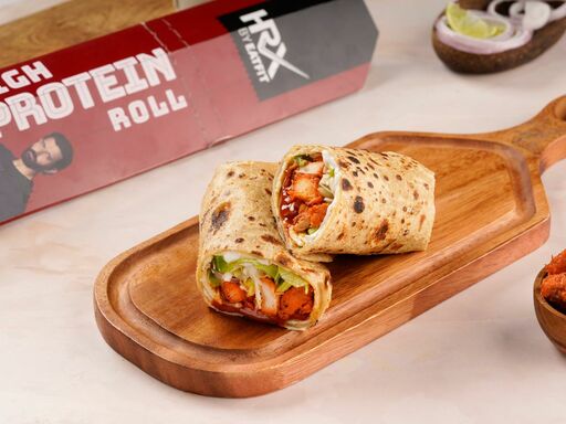 Serves 1 | [Energy: 619 kcal], [Protein: 28g] Delight in our Kolkata Chicken Kathi Roll, featuring tender chicken marinated in aromatic spices, wrapped in a flaky paratha, and garnished with fresh veggies and tangy sauces. Perfect for a savory meal on the go!