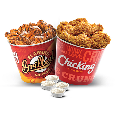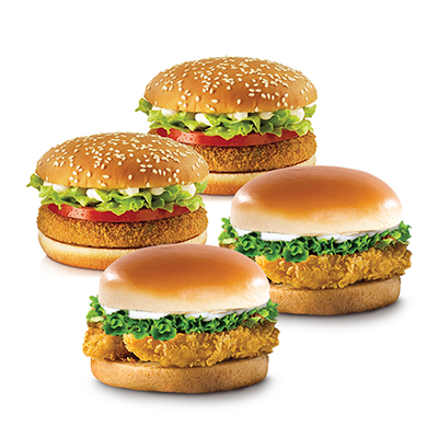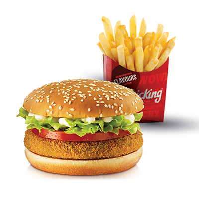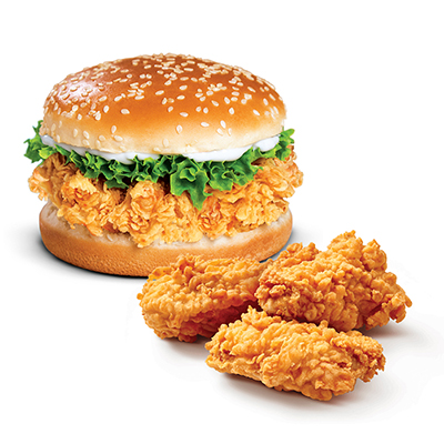 Our signature chicken fillet topped with fresh lettuce & crowned with light mayo in regular served with spicy hot wings.
