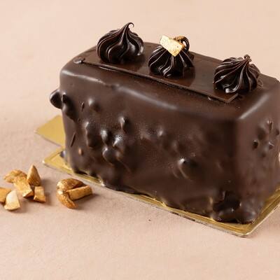 This brownie is enrobed in dark chocolate and receives a touch of elegance with a silky chocolate ganache. It's beautifully garnished with a delicate fondant flower and a chocolate disk. It's a guilt-free pleasure that doesn't compromise on flavour or texture. Eggless | Vegan Friendly