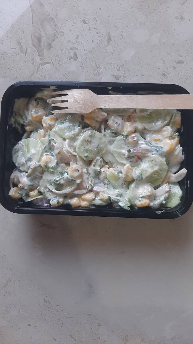 Chopped cucumbers with green chillies, grated coconut and crushed peanuts seasoned with combination of oil, mustard seeds, curry leaves and urad dal.