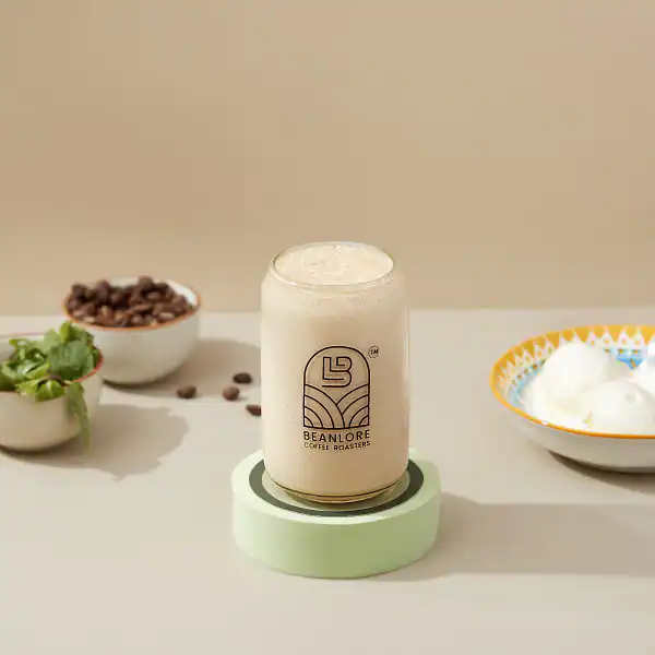 A creamy, icy frappe blending classic vanilla with a refreshing hint of mint, perfectly balanced for a cool, indulgent, and invigorating treat.