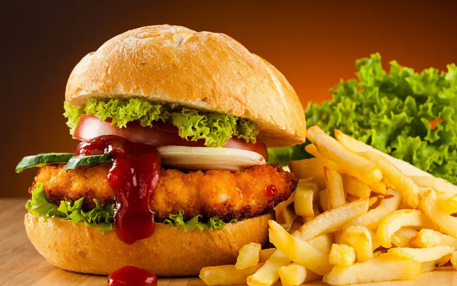 The Chicken Burger had no onion or tomato slices. Only pieces of small cucumbers.