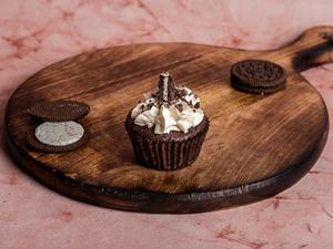 Chocolate cupcake topped with a delicious buttercream frosting adorned by oreo crumble!