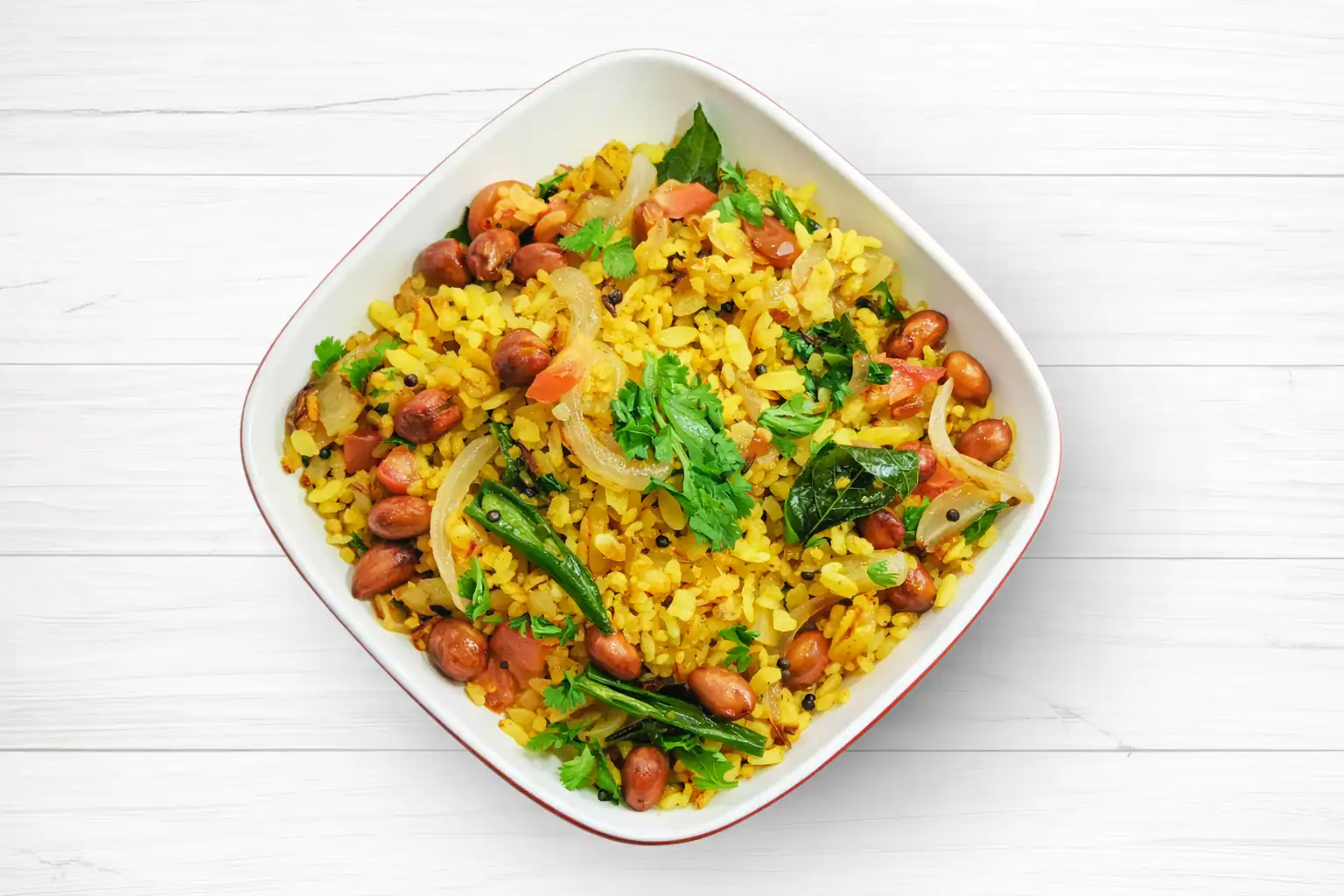 Light and fluffy flattened rice tempered with curry leaves, peanuts and a squeeze of lime. The ultimate feel good breakfast.