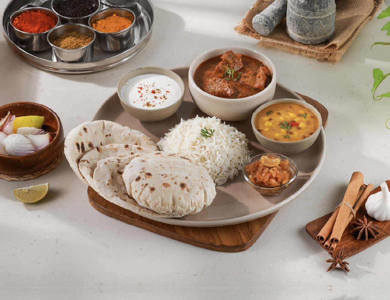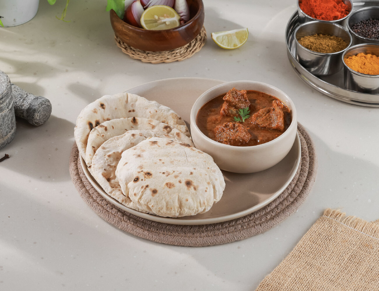Chicken cooked in onion masala curry + Phulkas/Rice. Combo contains Light Meal & Lemonade.