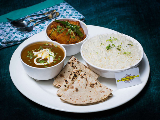 Choice of (3 Pcs) Phulka Or Plain Steamed Rice + Dhaba Egg Curry + Aloo Sabji