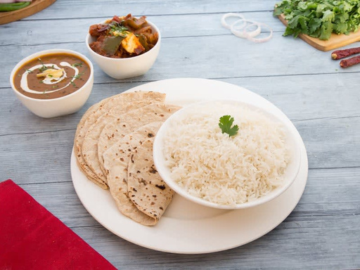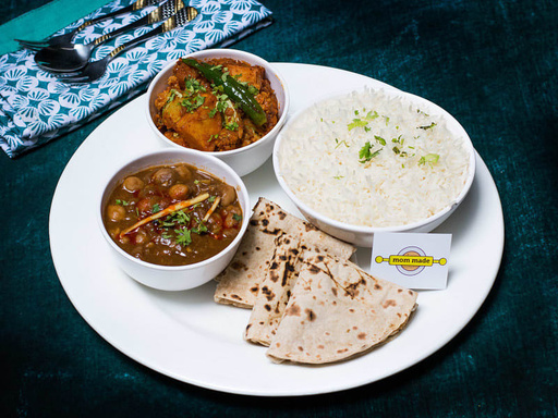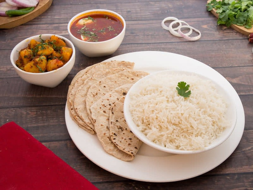Choice of (3 Pcs) Phulka Or Plain Steamed Rice + Amritsari Chole + Aloo Sabji
