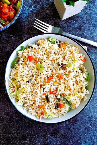 Spicy, Bold, and Flavorful! Savor the heat of Veg Schezwan Fried Rice, where fragrant rice is stir-fried with crunchy vegetables and tossed in tangy, fiery Schezwan sauce. This dish packs a punch of heat, spice, and savory goodness, making it a must-try for spice lovers. Infused with aromatic spices, it’s perfect on its own or paired with your favorite curry for a fulfilling meal!