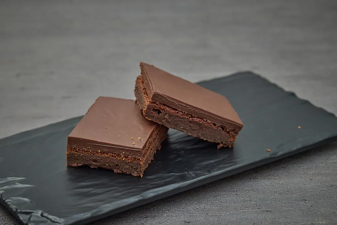Decadent and intense brownie made with 53% dark chocolate and topped with gooey and luscious Belgium dark chocolate ganache. Richness par excellence in every bite.