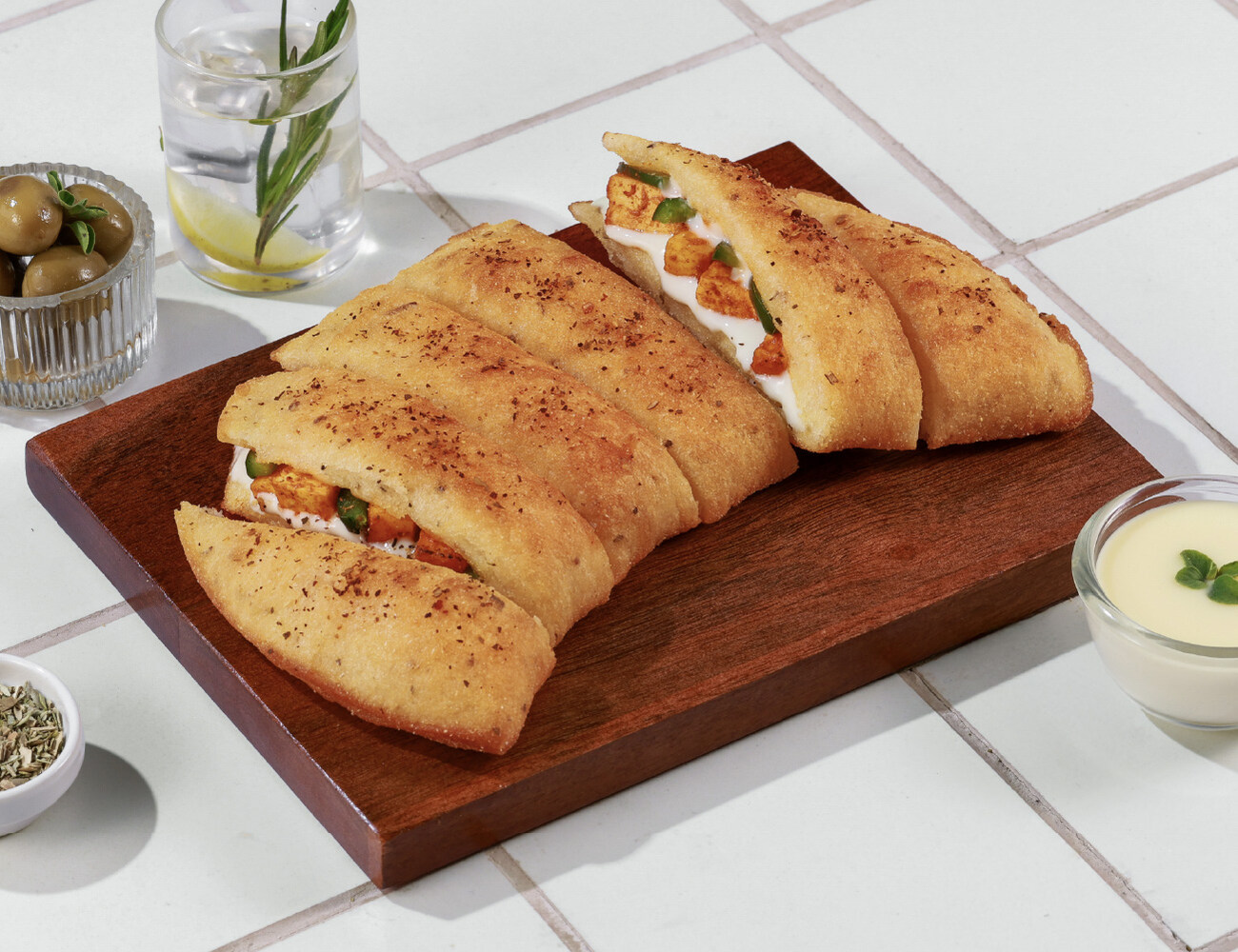 Can't get enough of cheese? A blast of molten cheese stuffed in baked breadsticks topped with garlic & seasoning.