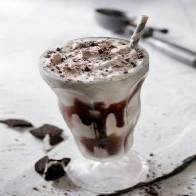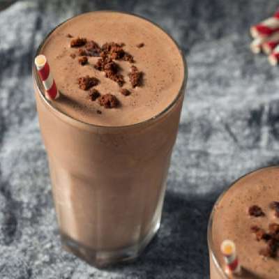 Indulge in our Chocolate Milkshake, featuring rich chocolate syrup blended with creamy vanilla ice cream and milk, topped with whipped cream and a drizzle of chocolate sauce for a velvety smooth chocolate delight.