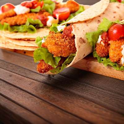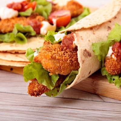 Indulge in our Chicken Wrap, featuring tender grilled chicken strips, crisp lettuce, juicy tomato ketchup, and a creamy dressing, all wrapped in a warm tortilla. A delicious and convenient choice for any time of day.