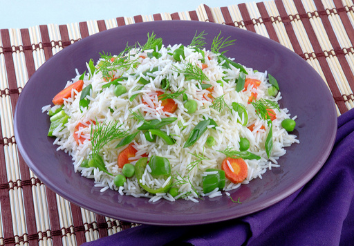 Aromatic fried rice tossed with a variety of fresh vegetables and Asian spices for a colorful and tasty dish.