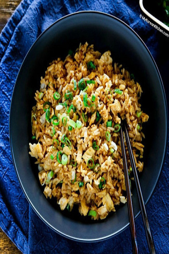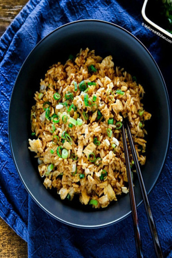 Fried rice enriched with scrambled eggs and seasoned with Asian flavors, offering a fulfilling meal.