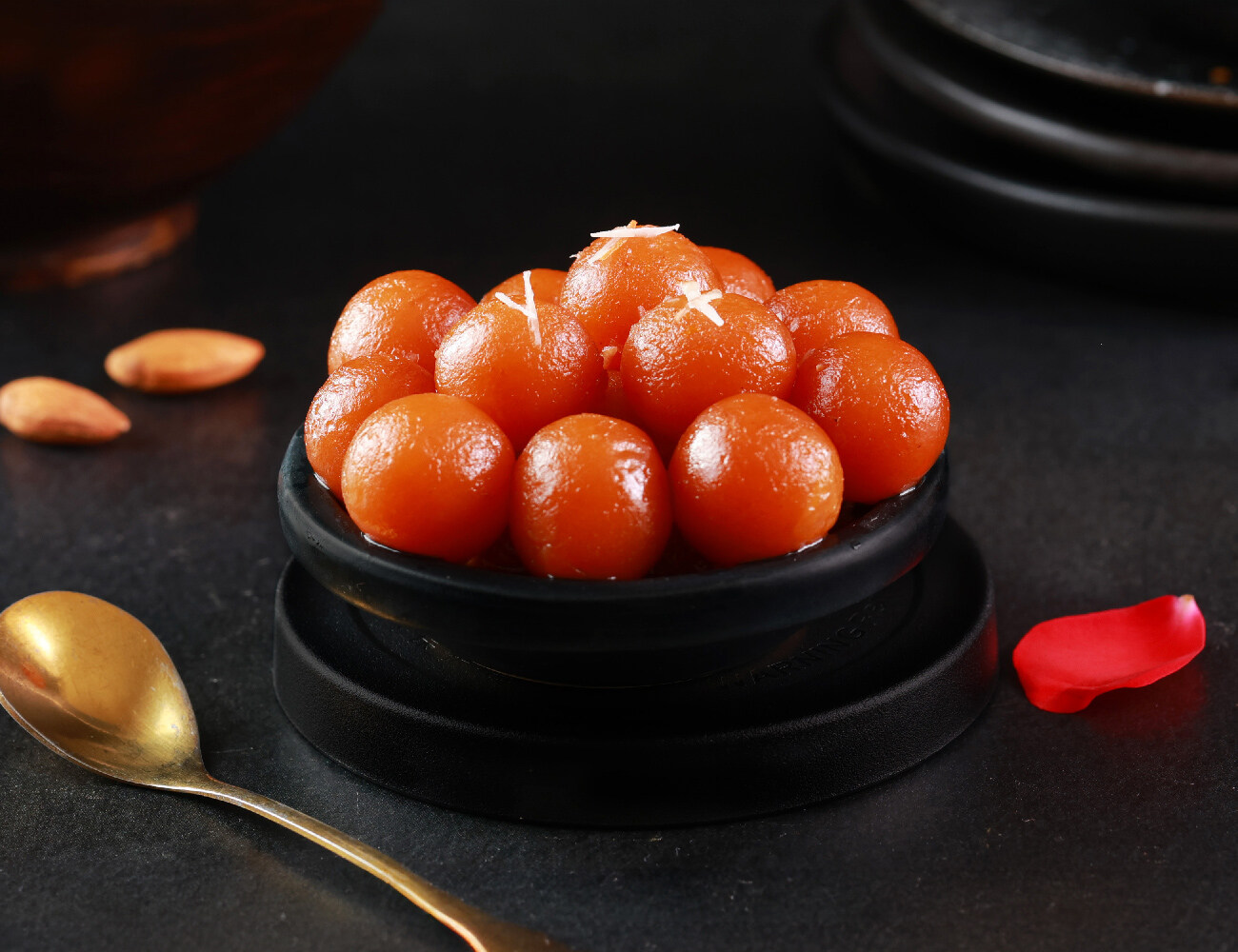 Rasbhare warm gulab jamuns made with fresh Mawa. Perfect after-meal meetha.