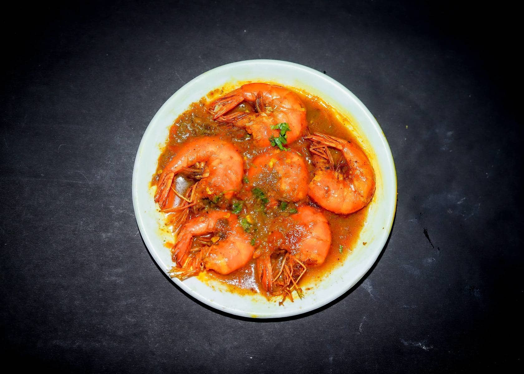Succulent prawns cooked in a rich, aromatic masala gravy, bursting with bold spices for a flavourful seafood experience.