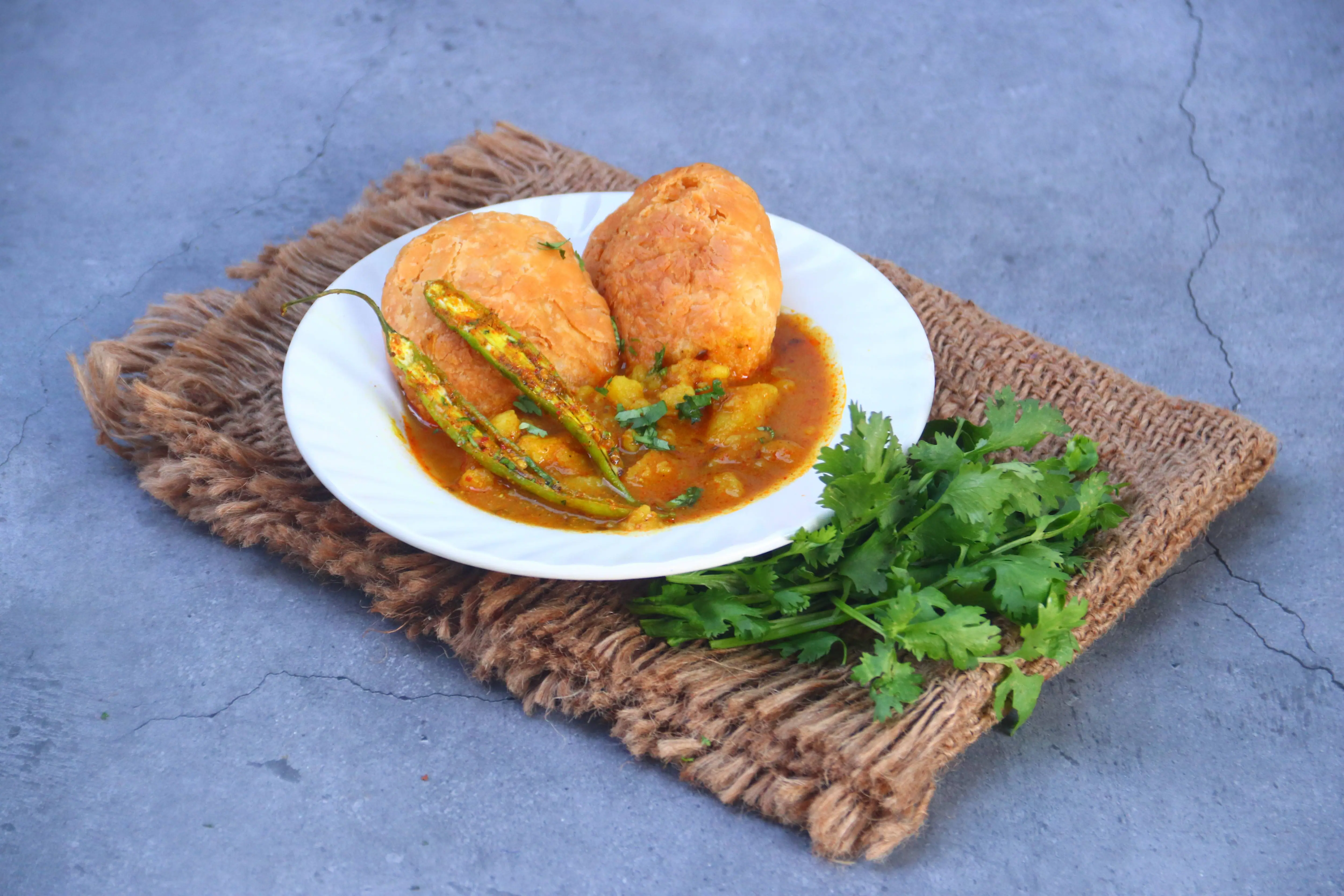 Khasta Kachori With Aloo Sabji [2 Pieces] Popular Indian snack that consists of a crispy deep fried pastry filled with a savoury mixture served with aloo sabji. ₹65 Khasta Kachori [2 Pieces] Indian snack that consists of a crispy deep-fried pastry filled with a savoury mixture. ₹40