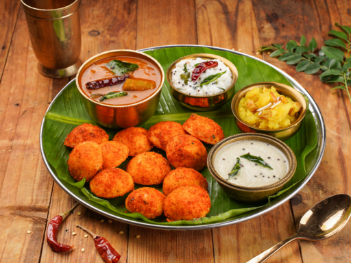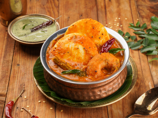 Soft steamed idlis and a crispy vada paired with hearty sambar and chutney.