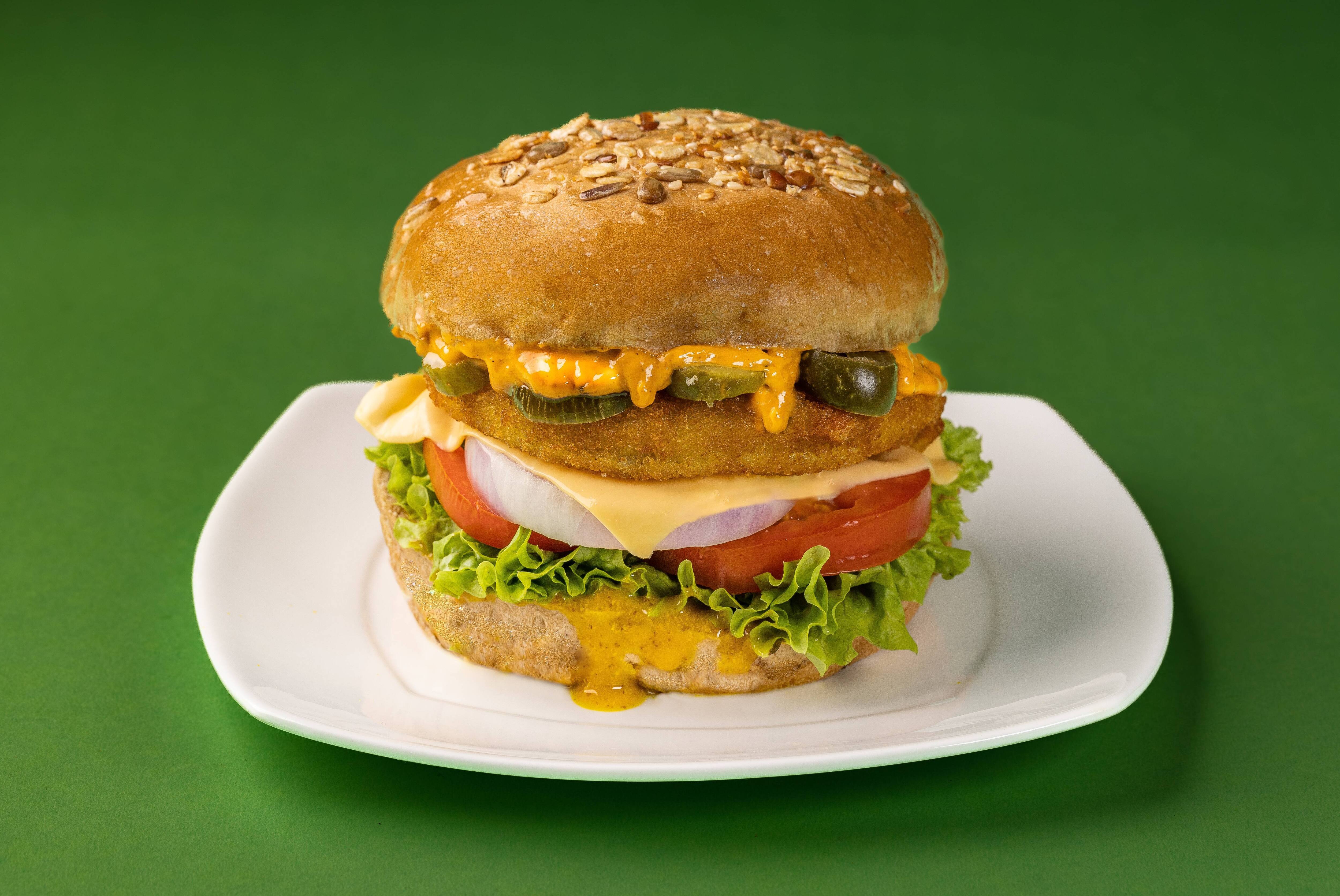 Crispy chicken patty in a bun [6 inches] of your choice served with onion tomato lettuce and jalapenos topped with tandoori mayonnaise, Thousand Island and chilli garlic and with cheese slice.
