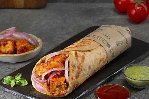 A generous portion of paneer chunks with vegetables wrapped in our special laccha paratha.