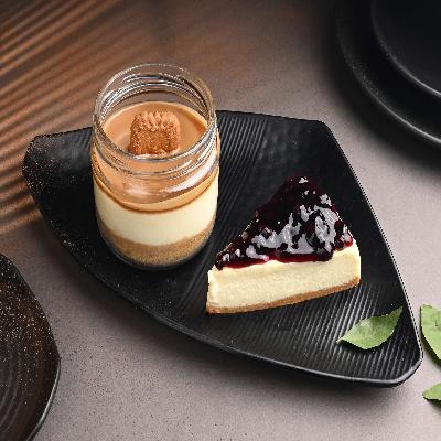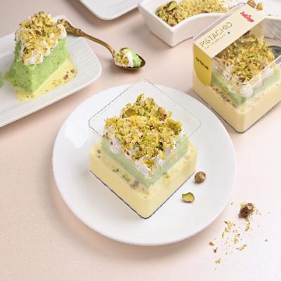 A combination of chocolate sponge and chocolate mousse, topped with a chocolate disk dusted in cocoa powder. Break through the top layer with a spoon to dive into this dreamy creation of chocolate Dream Cake.