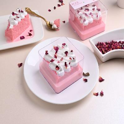 A luscious rose-flavored Tres Leches cake, soaked in a trio of sweet milks and adorned with delicate rose petals.