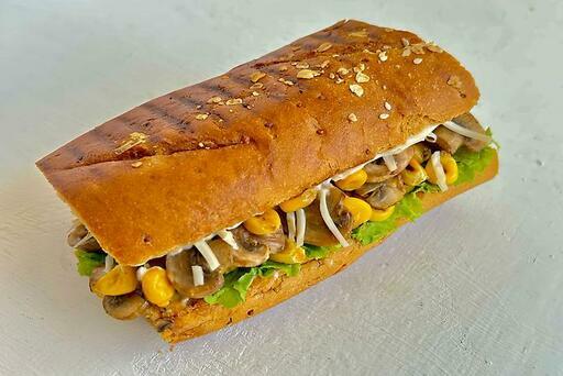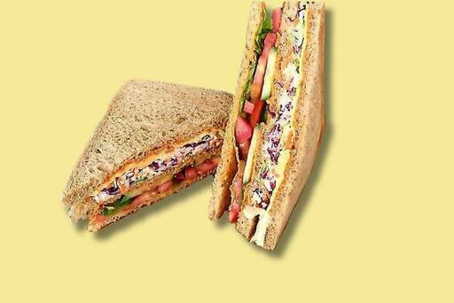 A medley of flavours, this sandwich is packed with yumminess. Fresh lettuce along with cucumber, tomato are topped with another bread and a colourful coleslaw, cheese slice is packed between butter-toasted bread slices, slathered with chipotle mayonnaise. Enjoy every bite of this sandwich anytime!