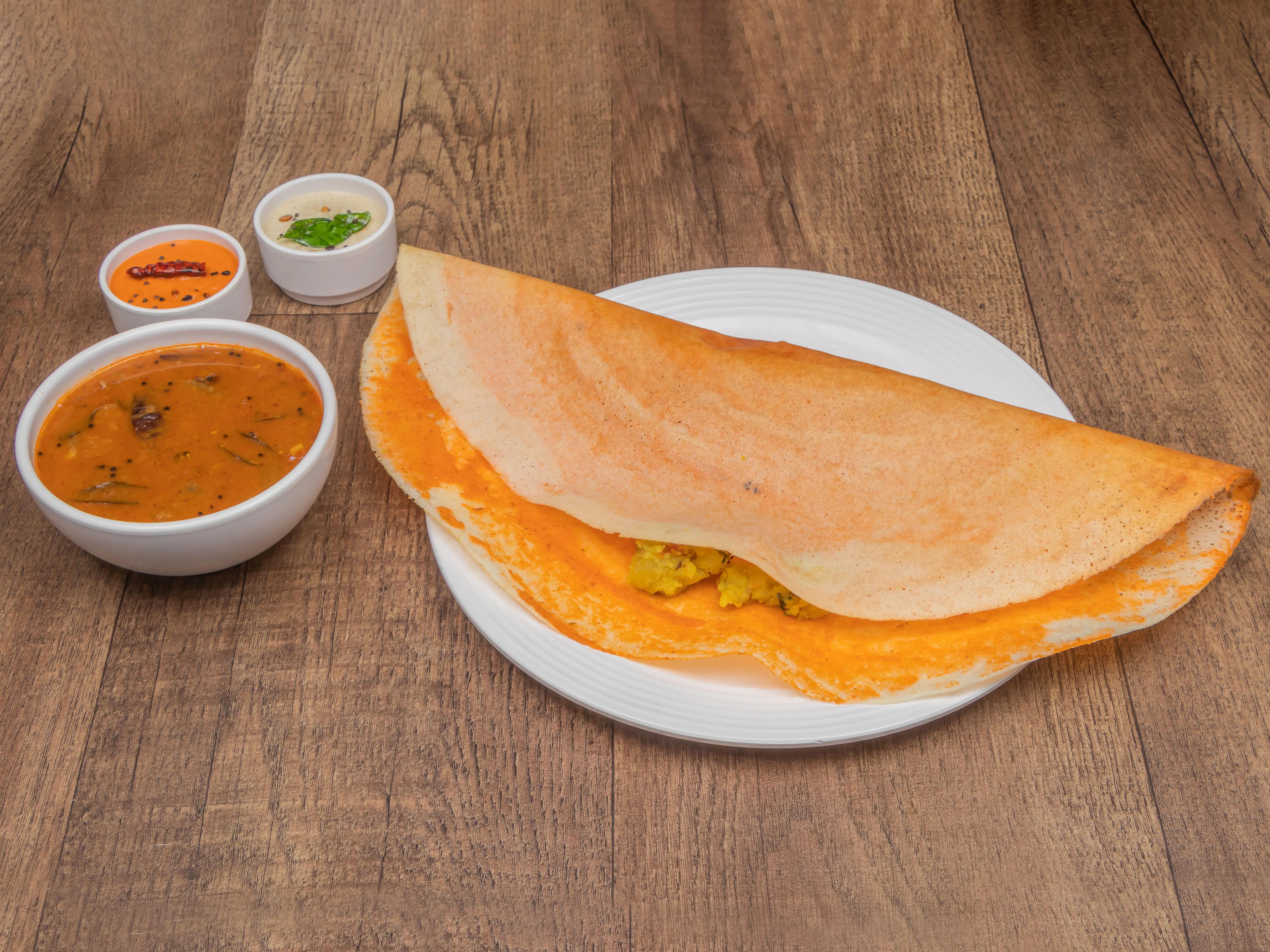 Chef's special dosa prepared with the assortment of vegetable, ghee, butter, corn, cheese and coconut.