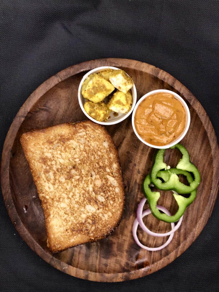 [Serves 1] RECOMMENDED - Artisan Freshly Baked Bread with signature Garlic Butter loaded Paneer & Red Paprika