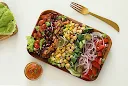 Juicy grilled chicken dices get fancied up with the exotic and mesmerizing taste of bbq sauce. This delectable salad comes with all the locally sourced fresh veggies, scrumptious servings of kidney beans, grilled chicken, assorted hand-torn lettuce with herbs, all tossed in a cumin vinaigrette dressing. A perfect one-dish meal that you will love!