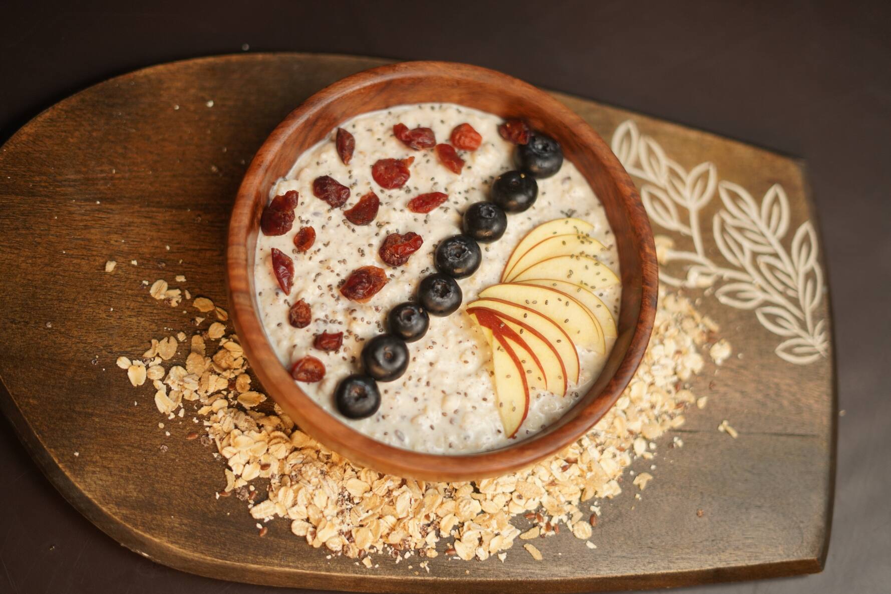 [veg preparation] A perfect textured wholesome bowl rich in fiber and complex carbs, perfect for sustained morning energy and post workout.This bowl contains approximately 306.2 kcal, [7.7 g] of protein, [59.2 g] of carbohydrates and [6.2 g] of fat. Available at anytime