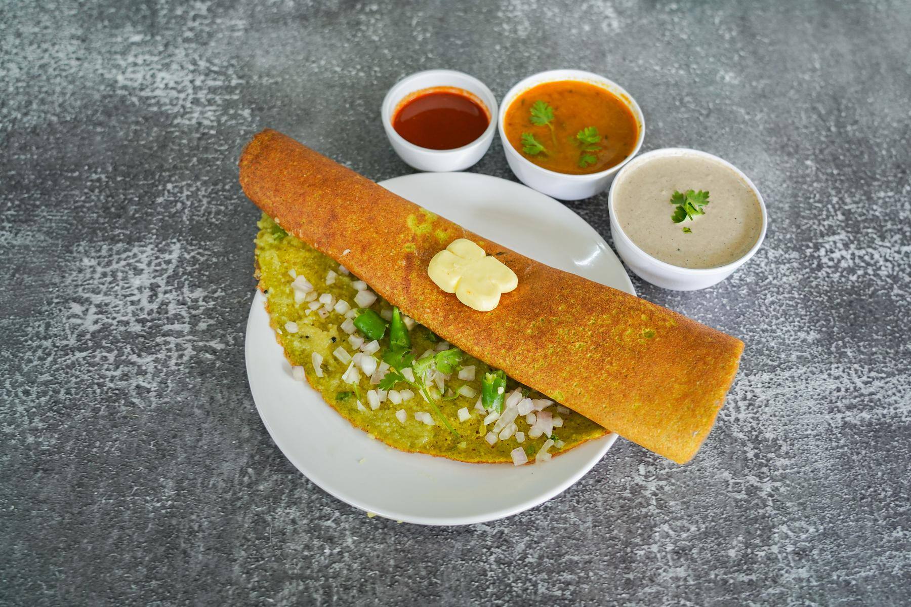 Upma Pesarattu ₹60 Onion Pesarattu ₹60 Paneer Pesarattu ₹70 Double Egg Pesarattu ₹80 Uttapam ₹79 Masala Pesarattu ₹60 Plain Pesarattu ₹55 Single Egg Pesarattu ₹70 Butter Pesarattu ₹70 Mysore Bajji [4 Pieces] ₹45