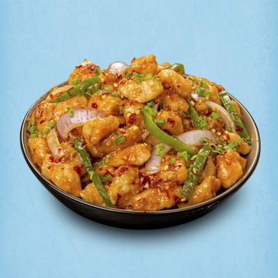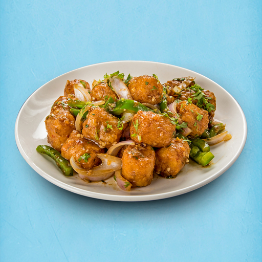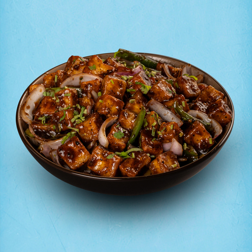 (Peppery & Non Spicy) Paneer, Onion and Capsicum tossed in classic Manchurian sauce.