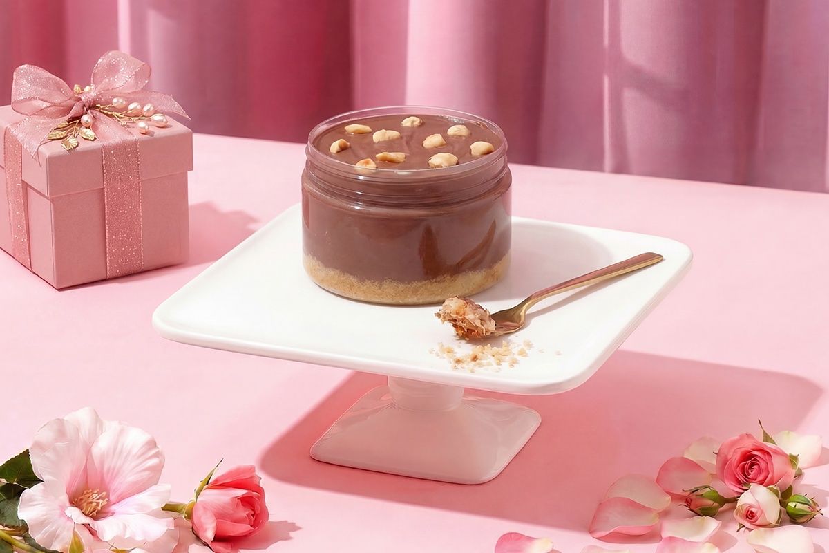 Indulge in layers of creamy, velvety cheesecake jar, infused with rich hazelnut flavor, perfectly complemented by a buttery graham cracker crust and cream cheese.