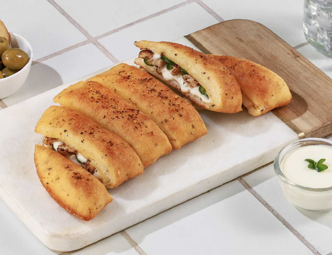Garlic breadsticks stuffed with flavoursome peri-peri paneer, creamy peri-peri sauce & capsicum. A spicy side for your pizza party!