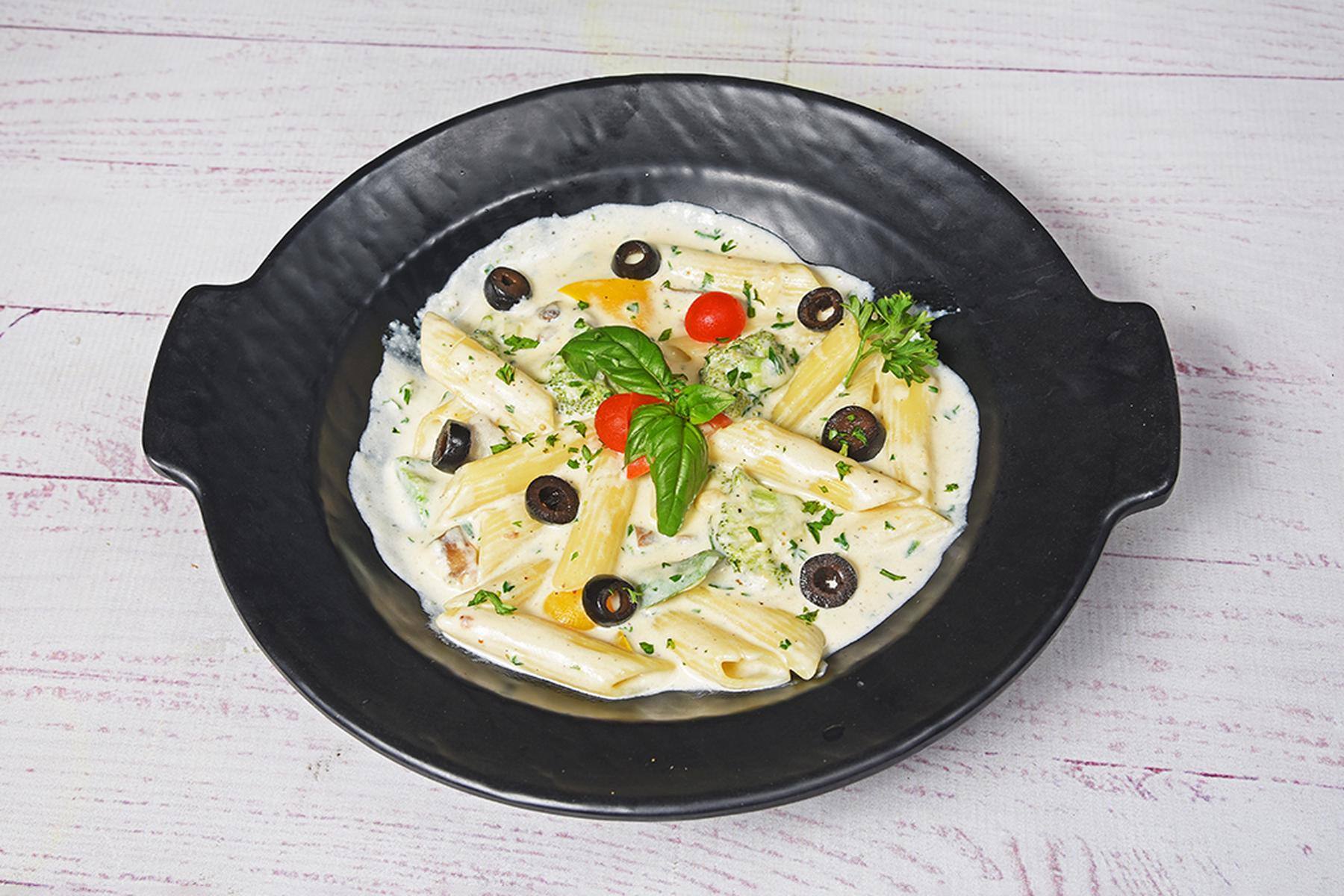 Garlic bread consists of bread, topped with garlic and occasionally olive oil or butter and may include additional herbs.