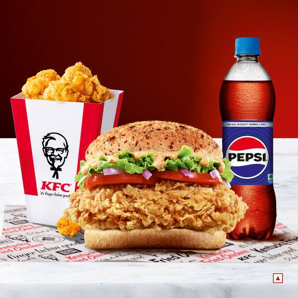 Deal combo of 2 chicken value burgers, 2 pc Hot & Crispy Chicken, 2 dips & a chilled Pepsi PET