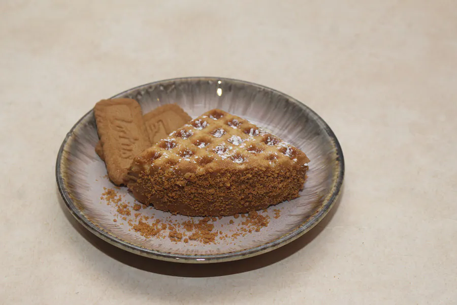 1 pc |each serving is a freshly baked chocolate waffle-wich, filled with belgian dark chocolate filling, topped with icing sugar sprinkle. (chef's recommendation)