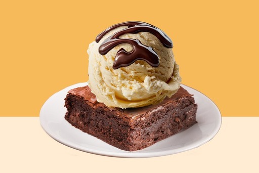 A warm gooey brownie with the world's best vanilla ice cream, topped with hot fudge or butterscotch sauce