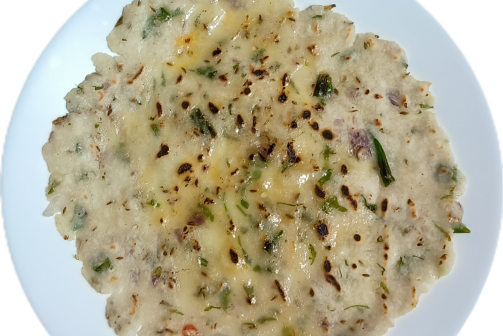 Akki roti is a traditional South Indian flatbread made from rice flour, mixed with grated vegetables, herbs and spices. It is typically served hot with chutney or sambhar for breakfast or lunch.
