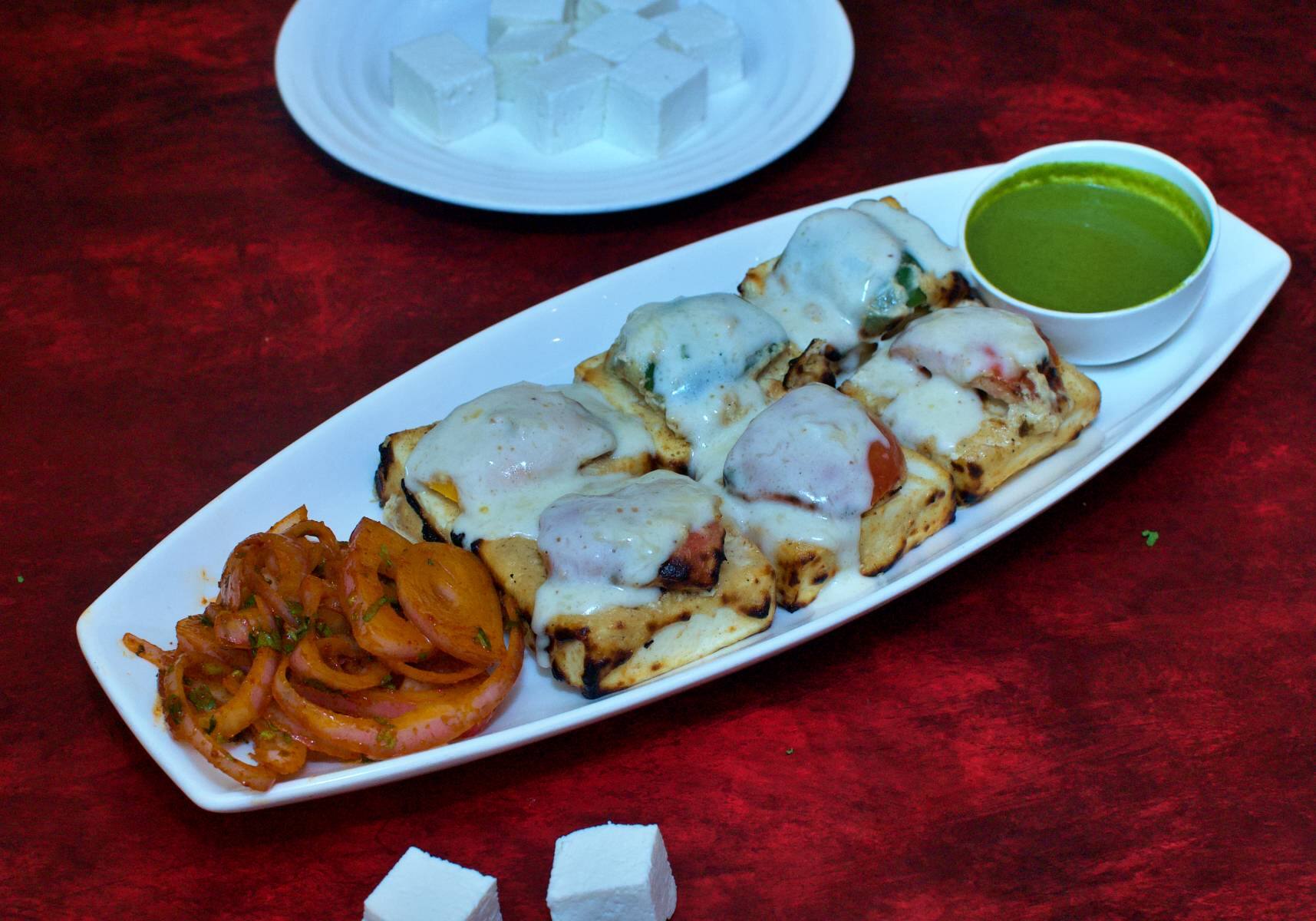 Roasted Papad [3 Pieces] Papad roasted to perfection. ₹95 Masala Papad Cone [2 Pieces] Papad roasted in shapes of cones filled with Indian flavoured spices, mixed with tomato, onions and coriander leaves. ₹95 Spicy Onion Salad Sweetly tinged ring onion flavour with spicy and tangy spices. ₹95 Mushroom Tikka Marinated mushrooms grilled in tandoor bursting with flavourful tikka spices. ₹365 Paneer Tikka Classic Indian cottage cheese coated in special recipe of red recipes and cooked in tandoor. ₹395 Hara Bhara Kebab Popular North Indian snack made from vibrant mixed of spinach, peas potatoes aromatic flavours and spices offering an indulgent appetizer. ₹415 Malai Paneer Tender creamy cottage cheese coated in royal cream and spices grilled in clay oven. ₹405 Tandoori Aloo Flavourful appetizer, marinated and spiced potato with rich stuffing grilled in a clay oven. ₹365 Paneer Hariyali Vegetarians favourite, paneer marinated with cilantro, blend of yogurt, spices and slow cooked in tandoor. ₹395 Malai Broccoli Fresh broccoli marinated in royal creamy spices. ₹365