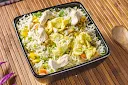 Tender strips of chicken are sauteed to perfection and tossed with fluffy egg noodles.