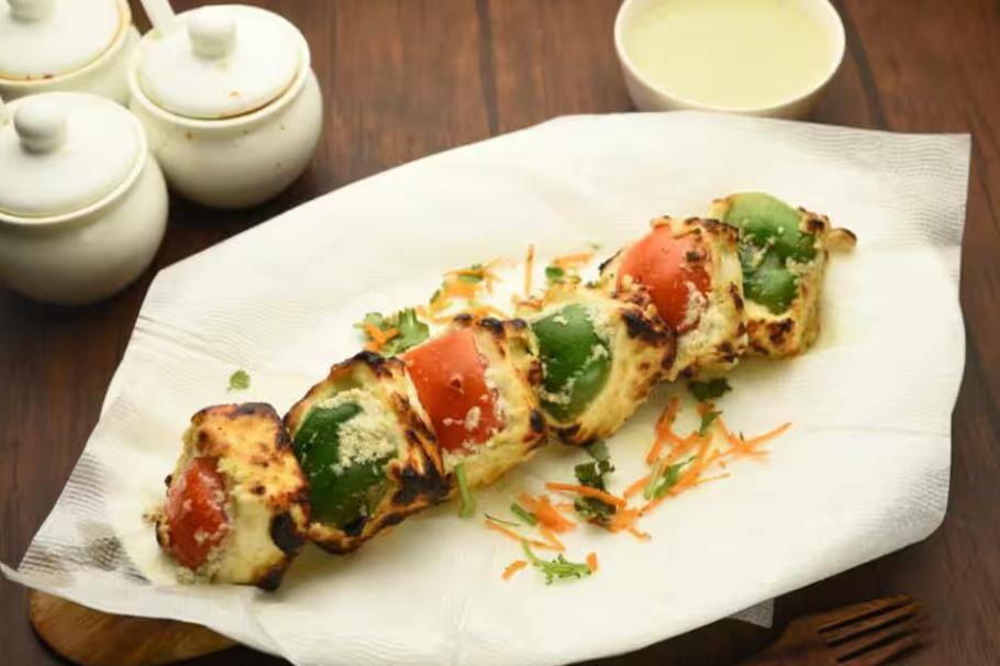Spicy, tangy paneer cubes stir fried with bell peppers and onion in a bold sauce.